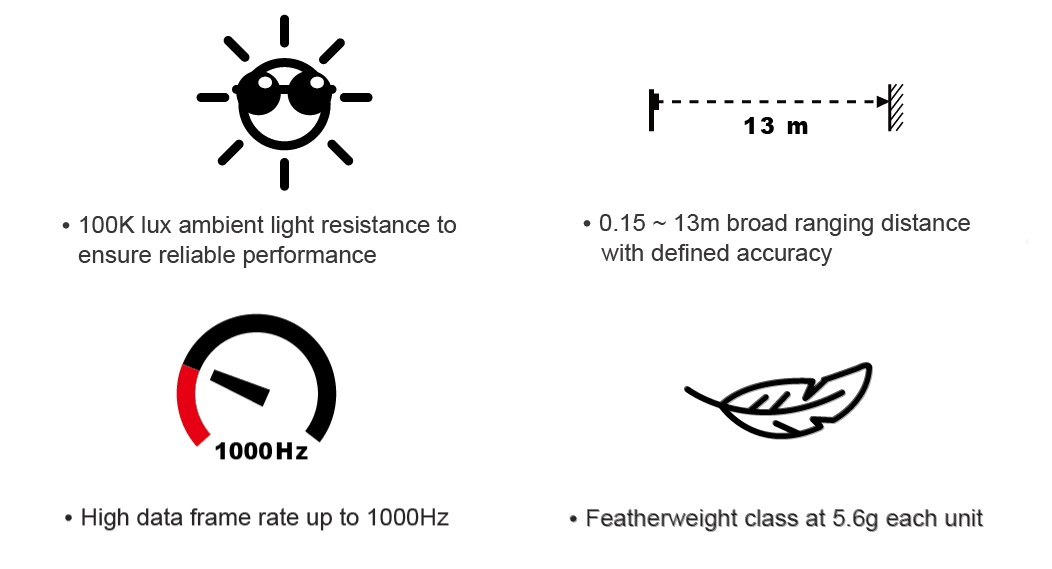 A high-speed, compact 1D laser distance sensor for developers building mobile robotics and drone systems that require accurate, low-latency sensing in real-world lighting environments. Click 'Learn More' to get product specs and download product datasheet.